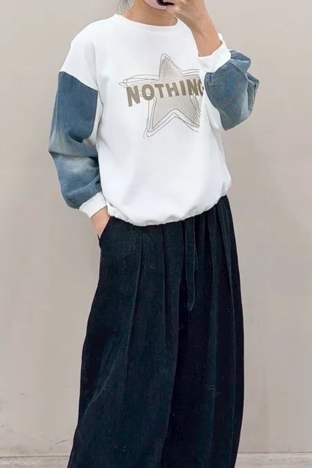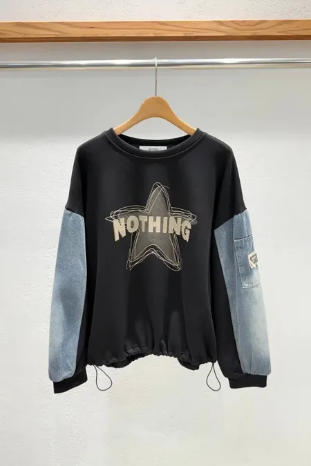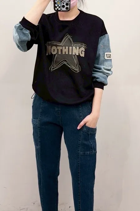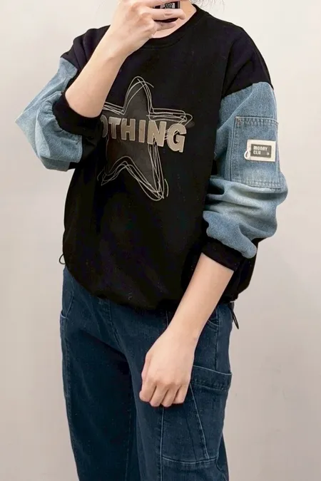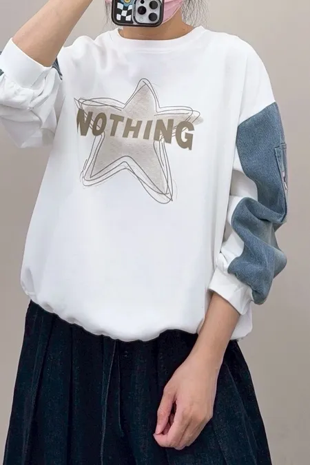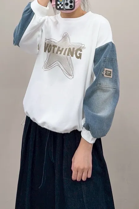星星圖文袖配牛仔T