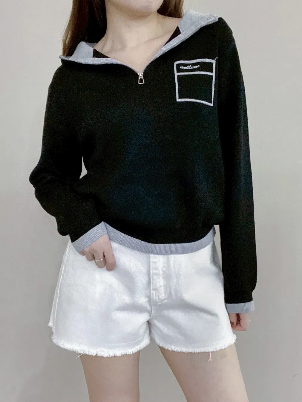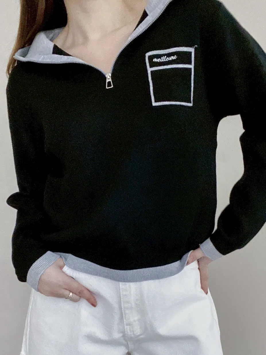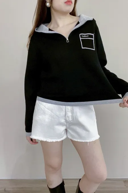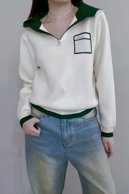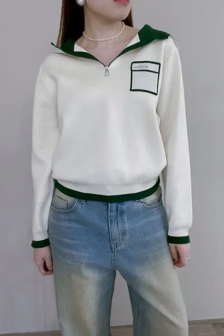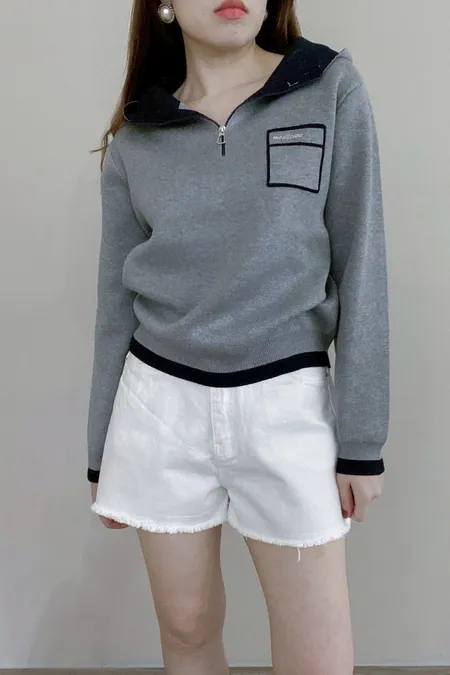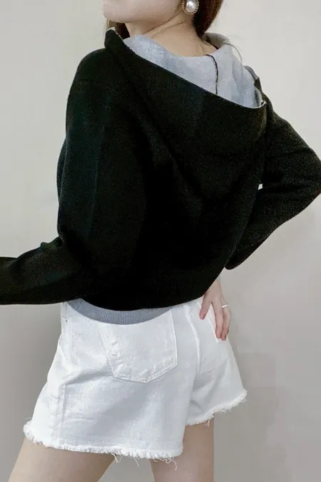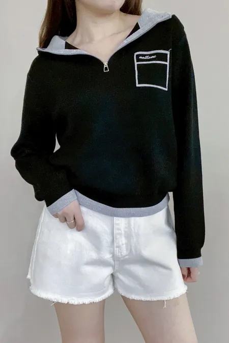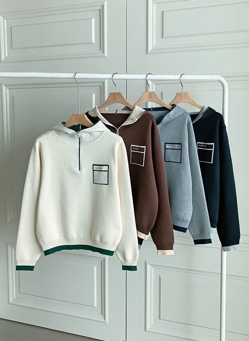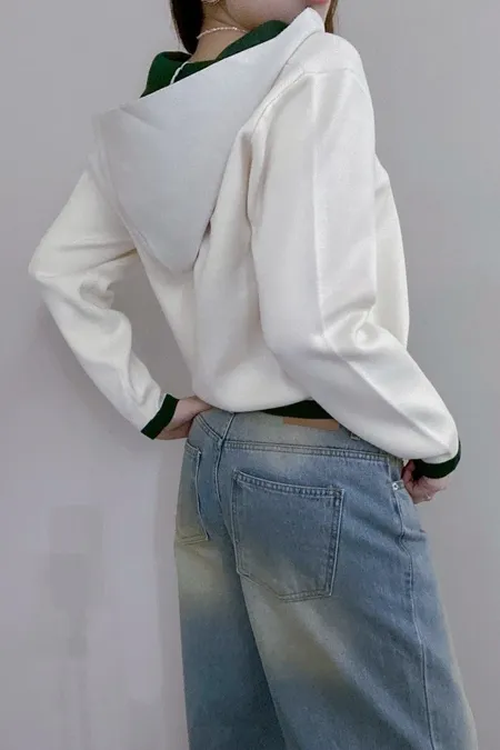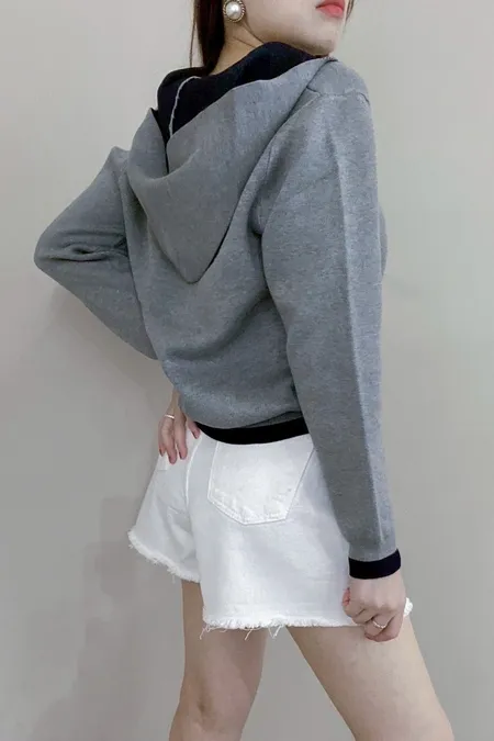 配色針織帽T