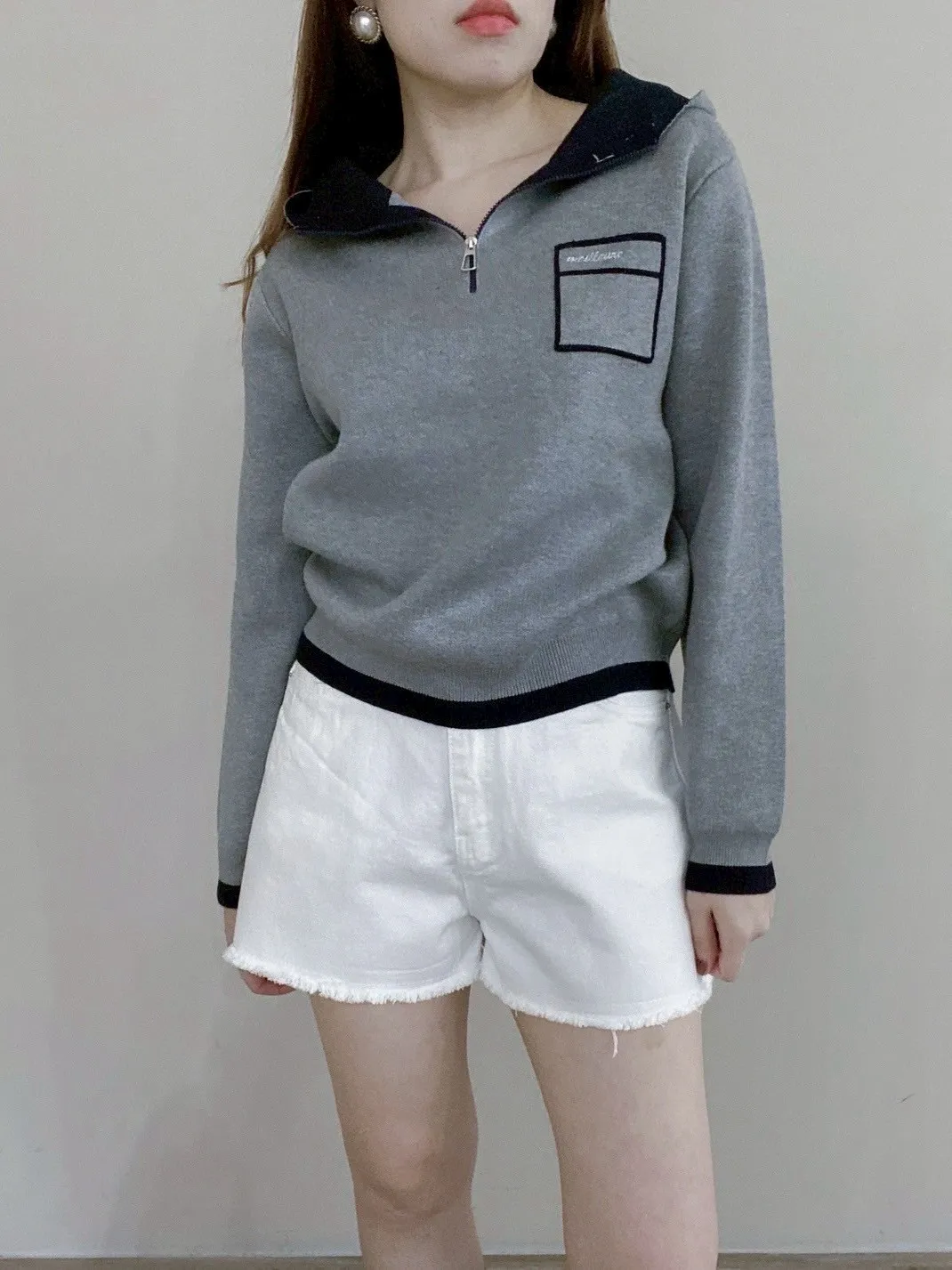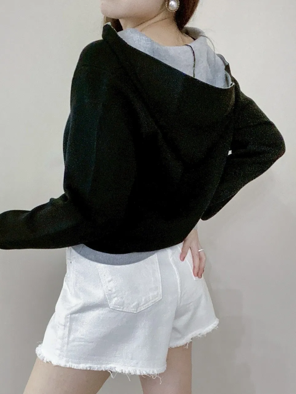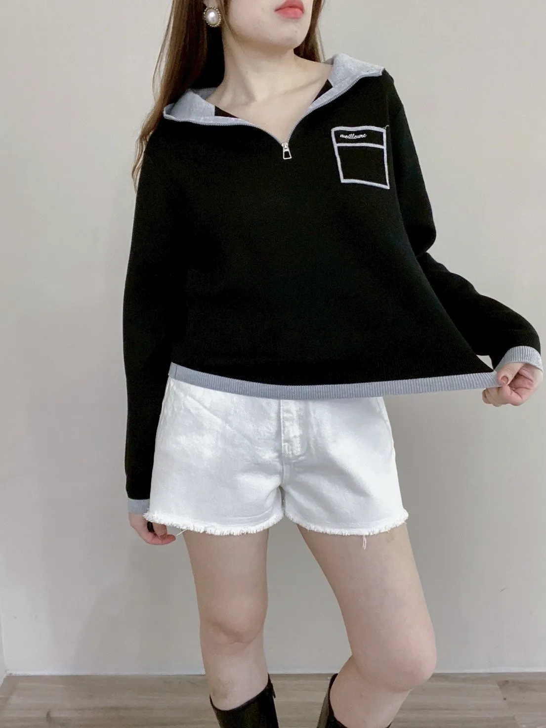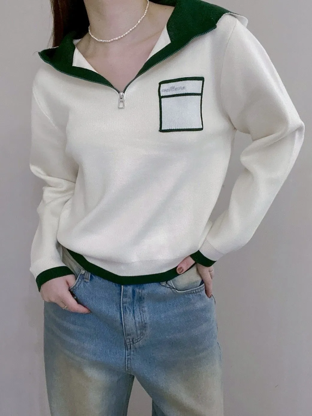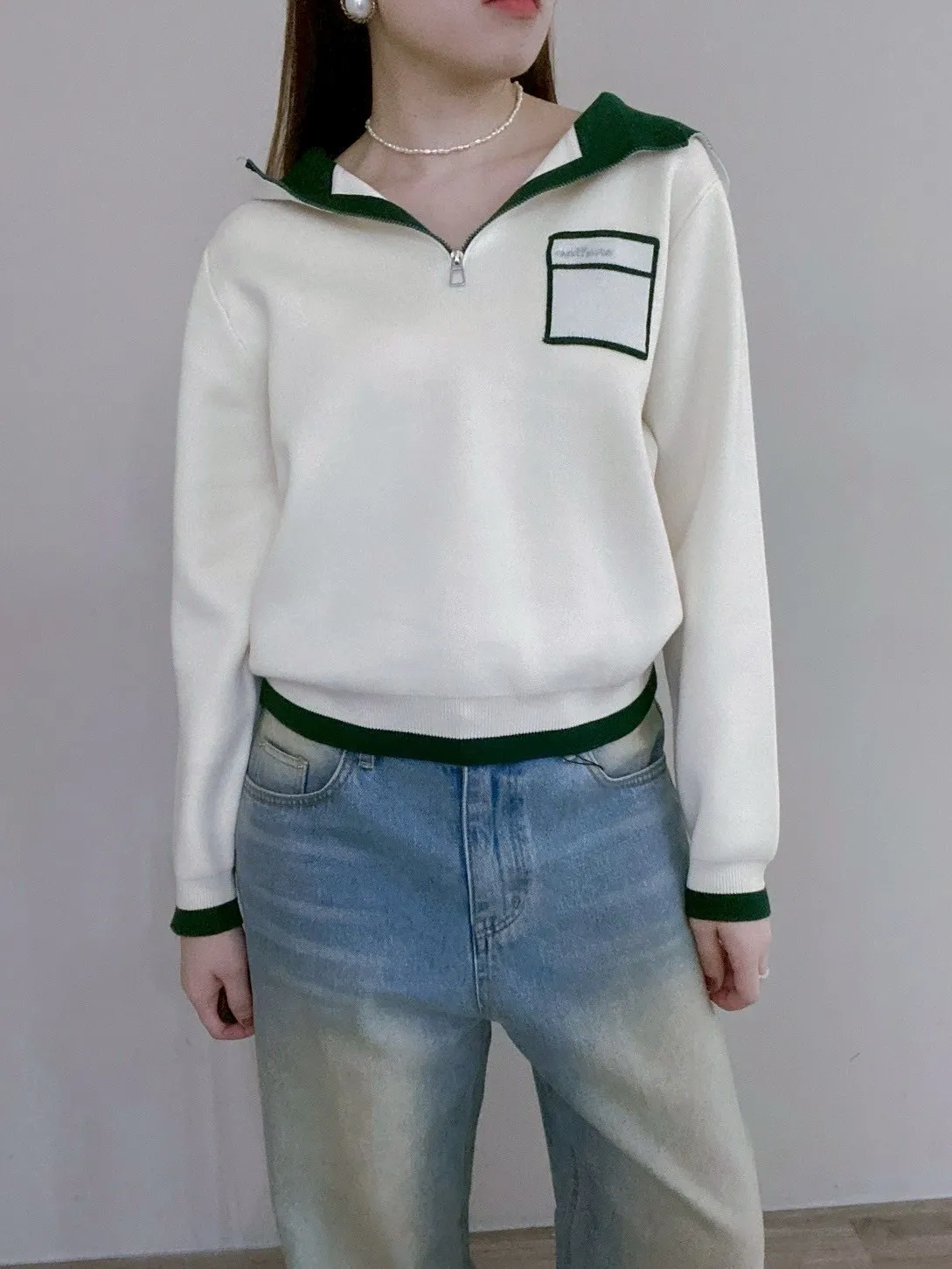 配色針織帽T