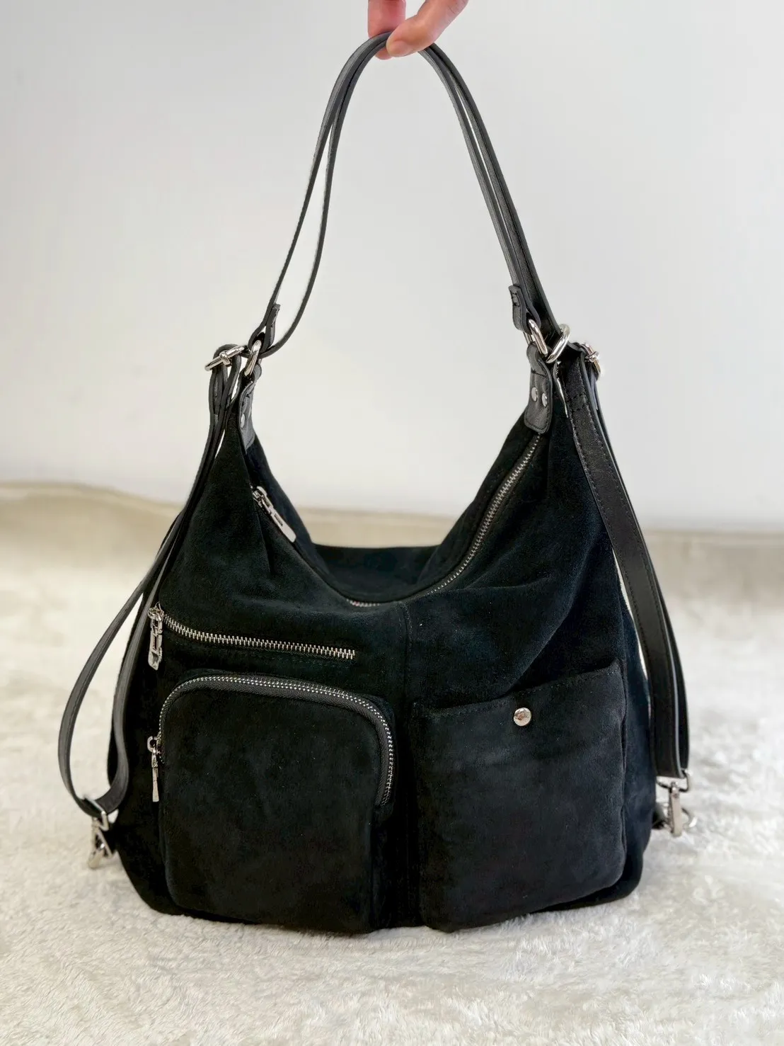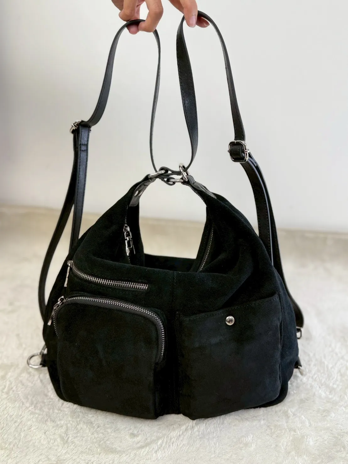 此款包包,可斜背、肩背、後背 本賣場商品皆為韓國空運追加代購恕不提供退貨服務,如因尺寸不合或商品瑕疵可換同商品,本賣場吸收國際運費及追加成本,幫您處理更換尺寸,台灣國內運費需自付承擔,如果對於產品質料、尺寸相關疑慮,建議您可以私訊臉書小幫手或者前往門市試穿體驗後再來決定訂購購買。