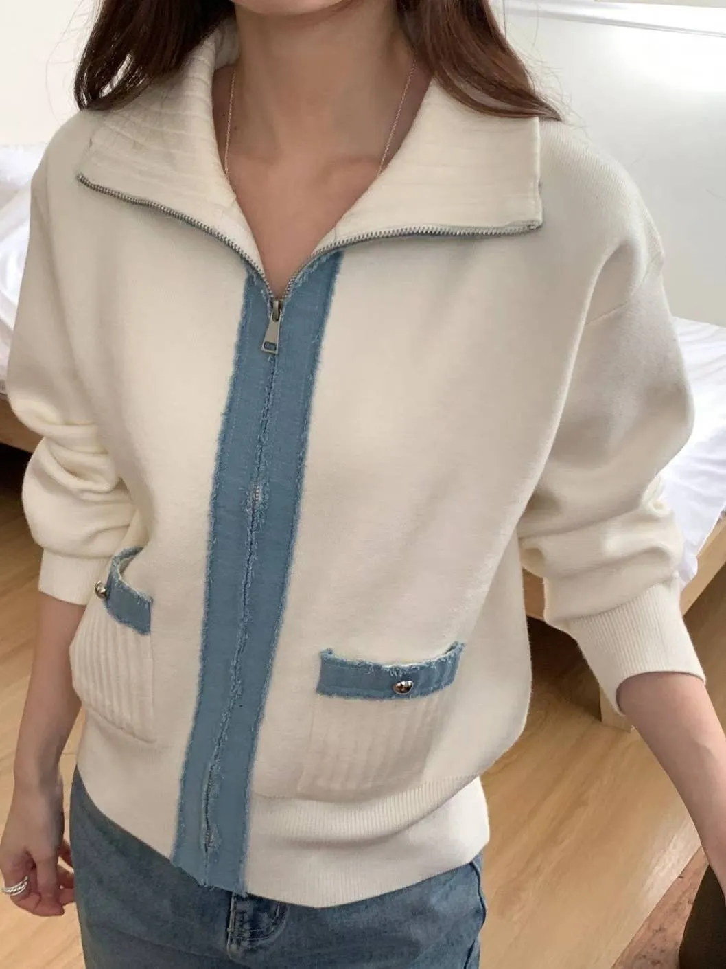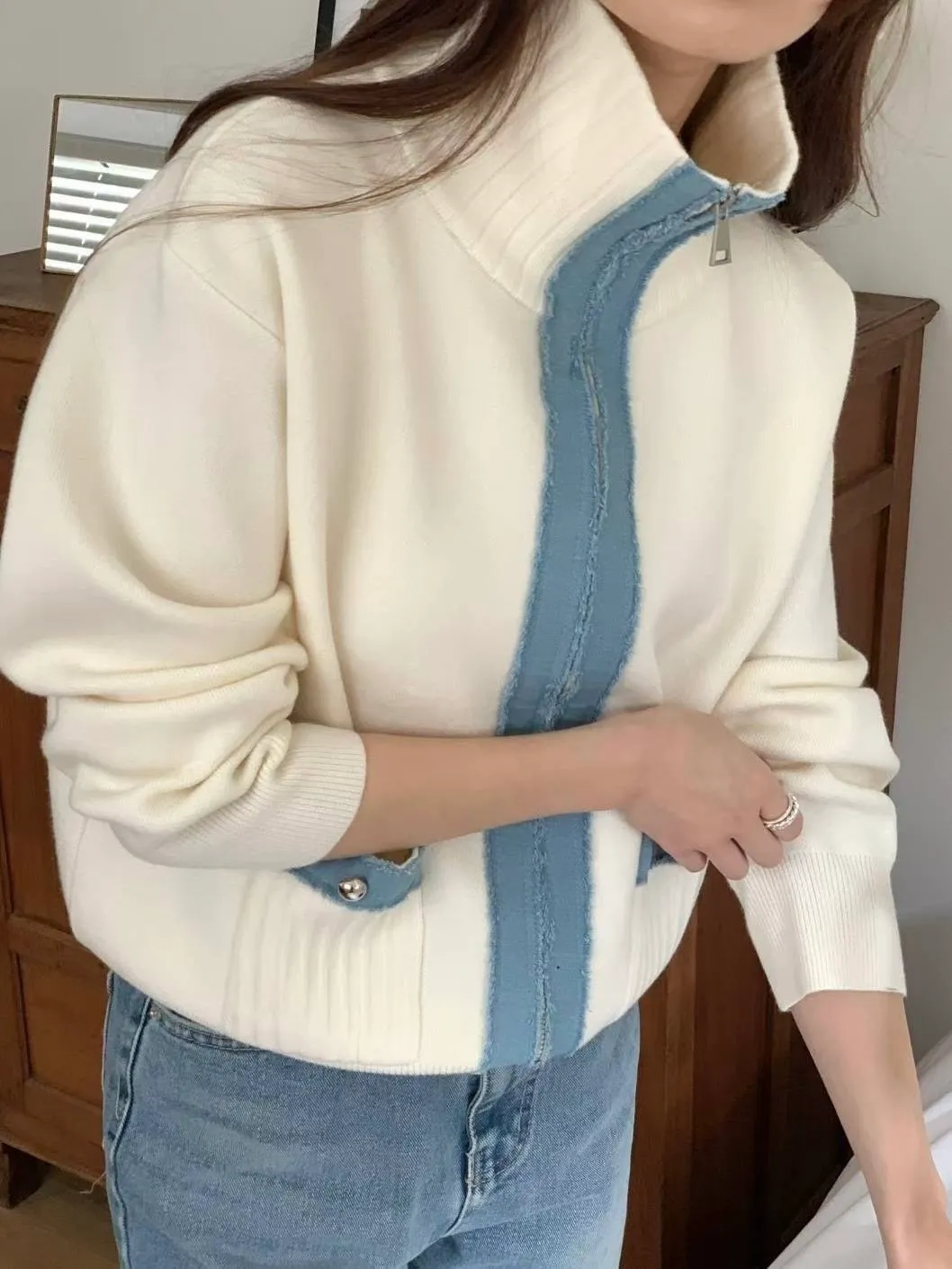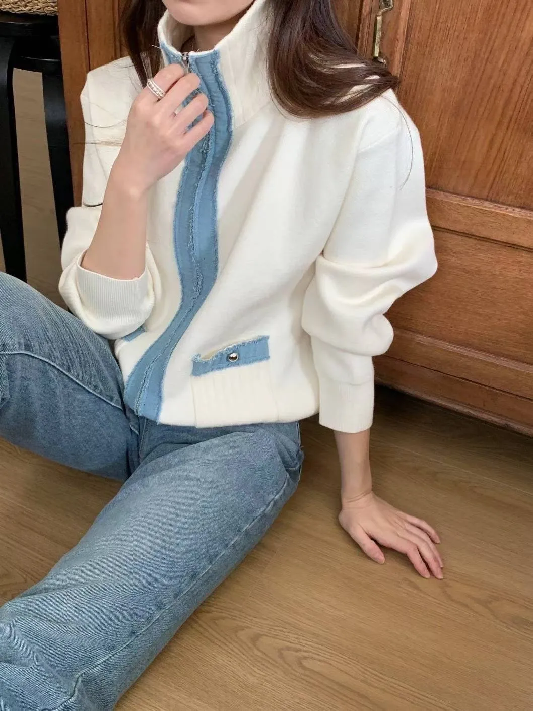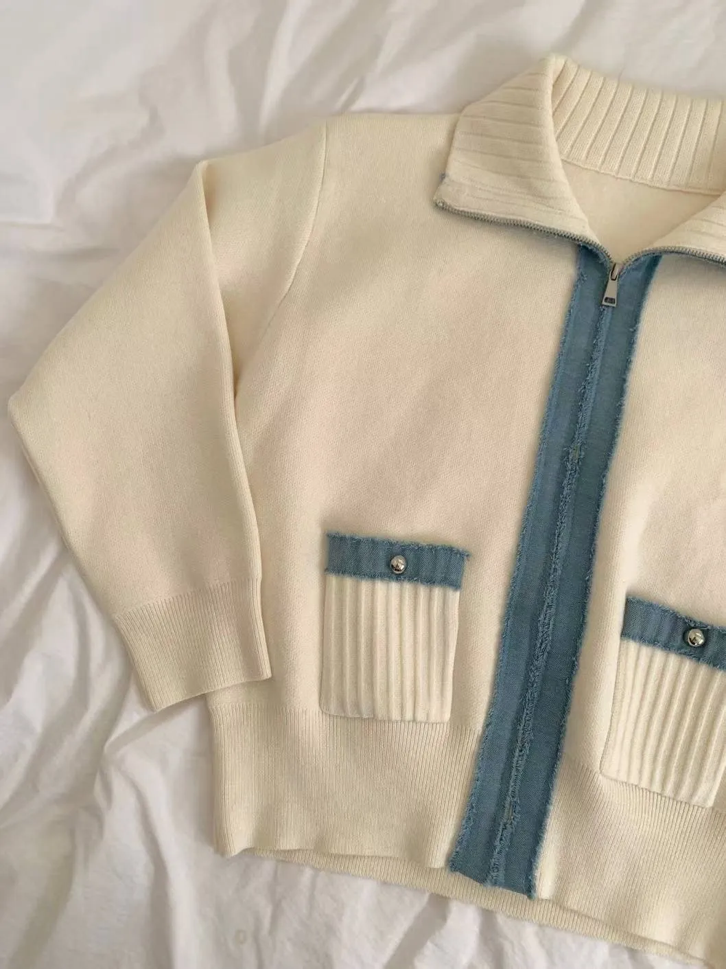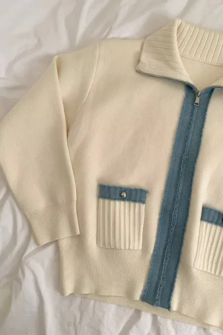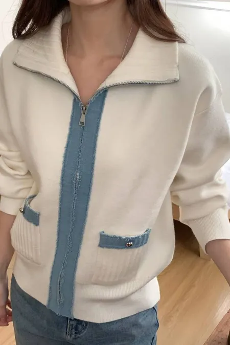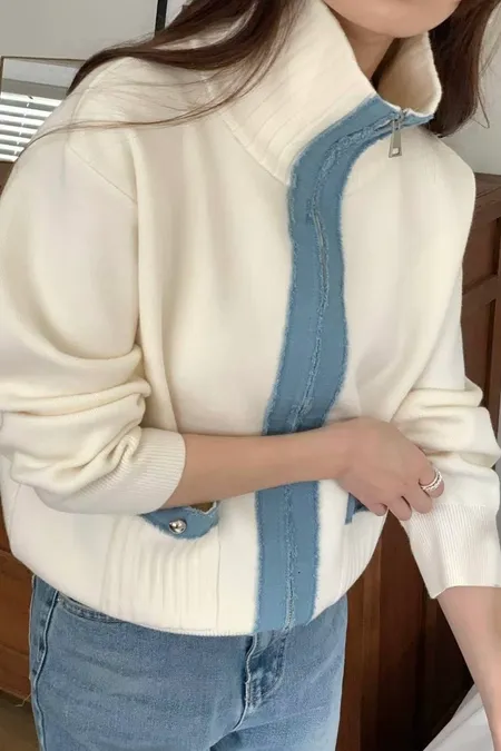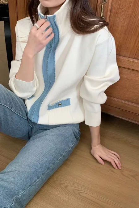 滾牛仔厚磅針織拉鍊外