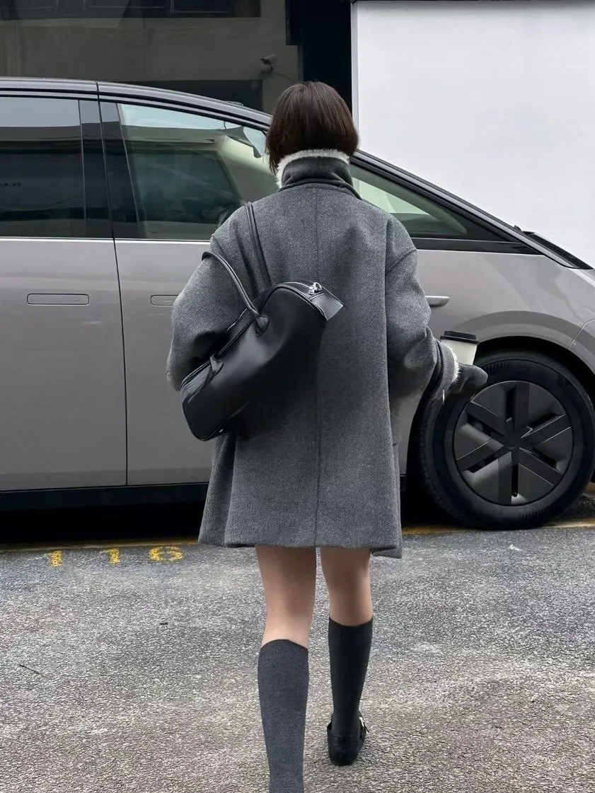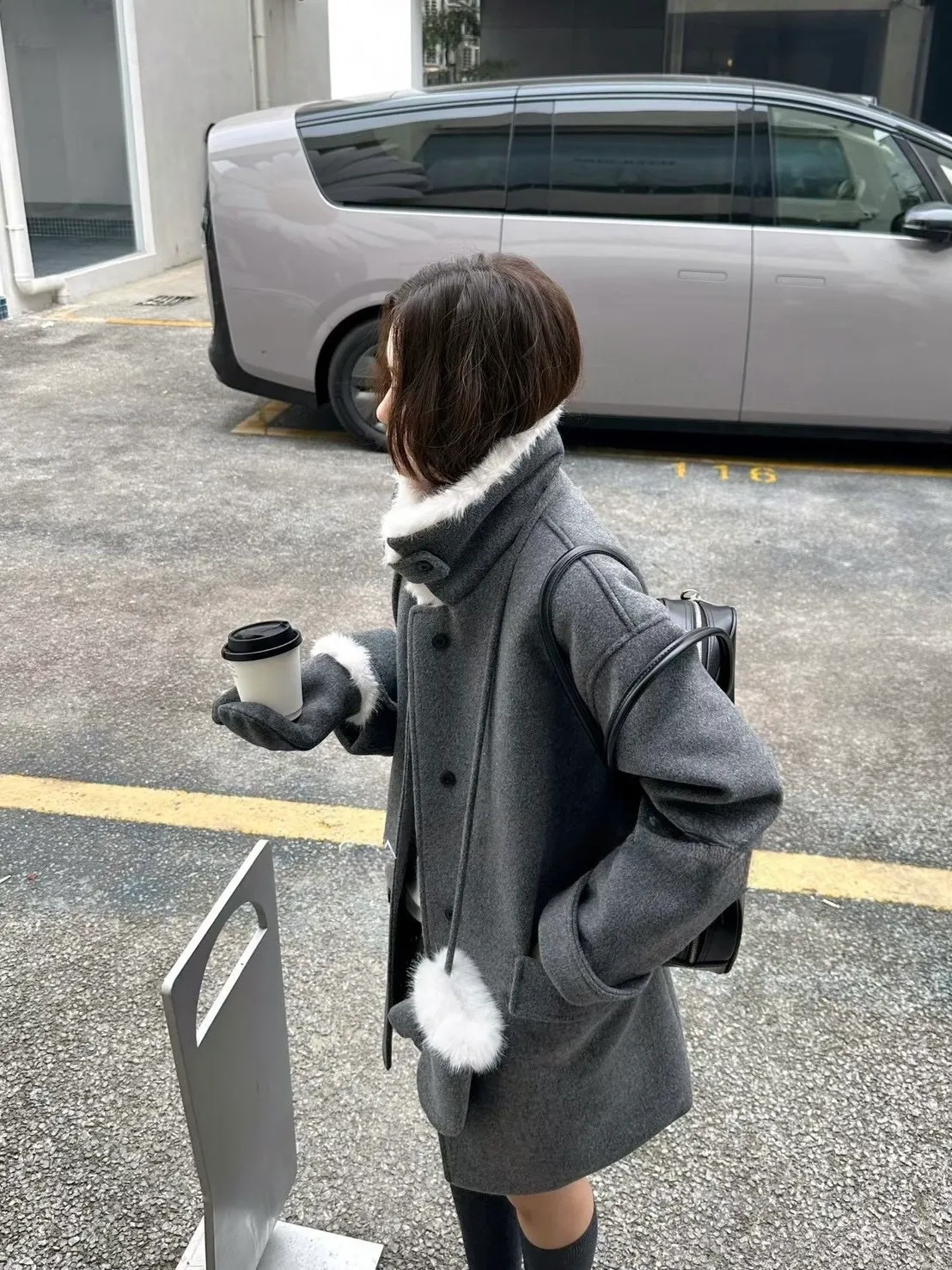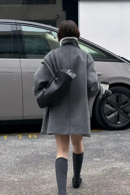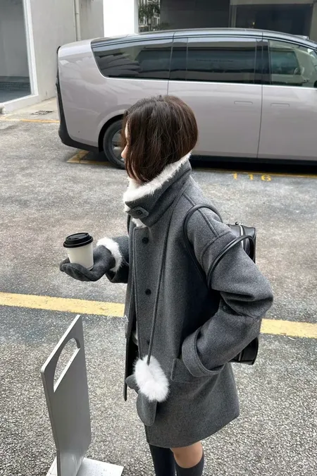 附毛套羊毛半大衣