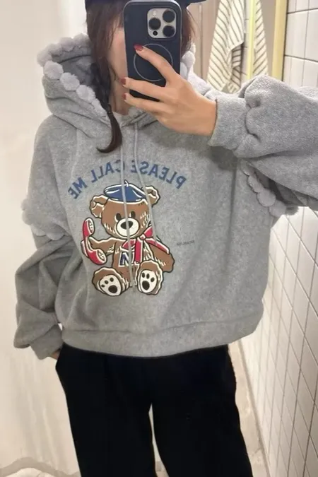 熊熊QQ軟毛帽T
