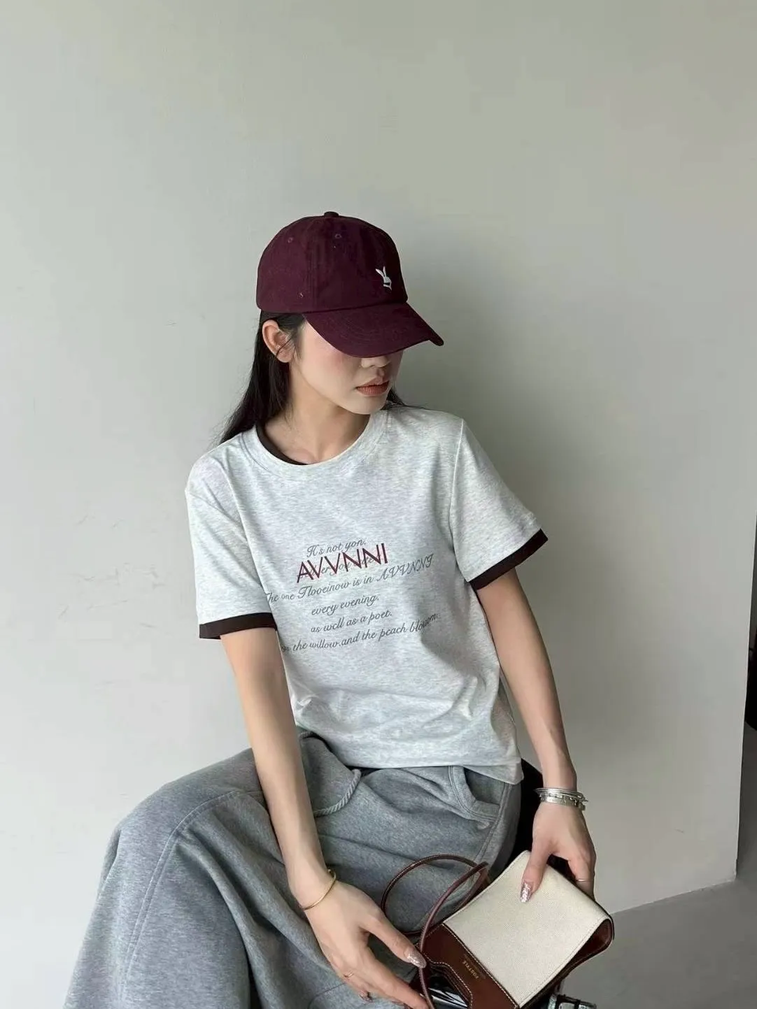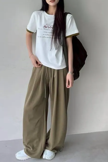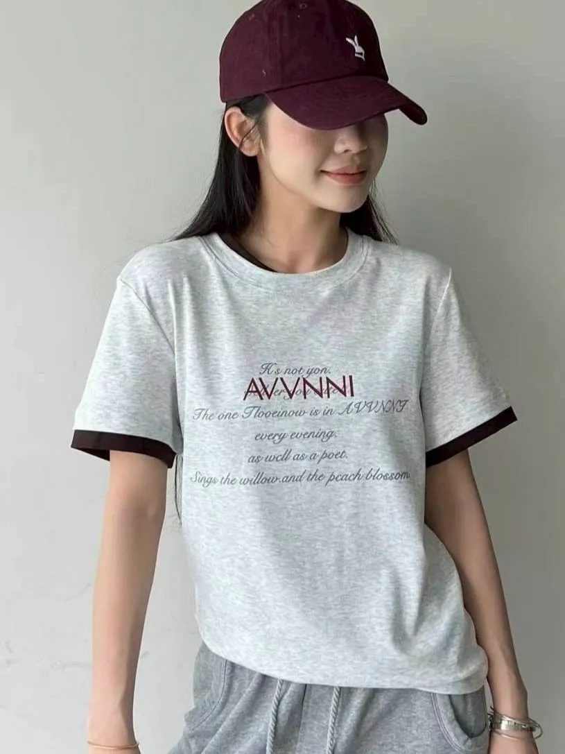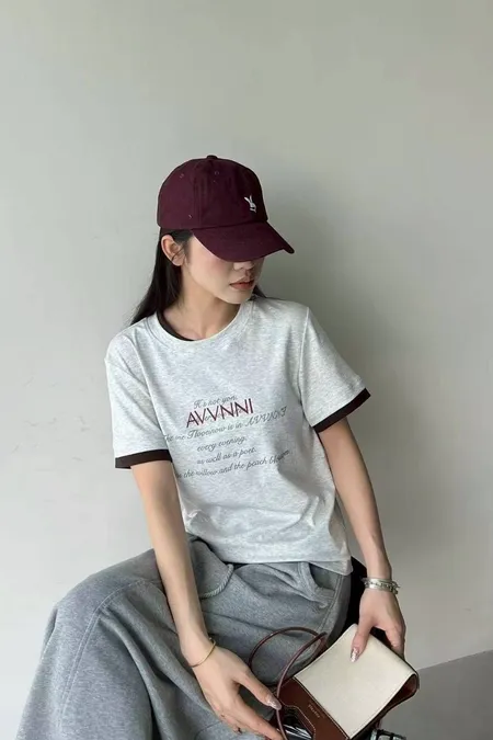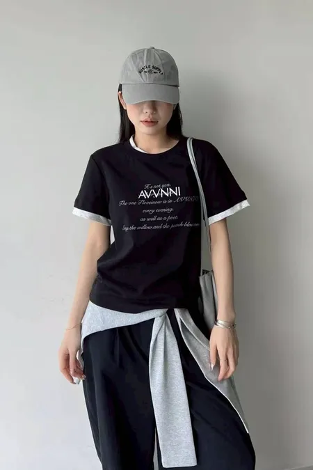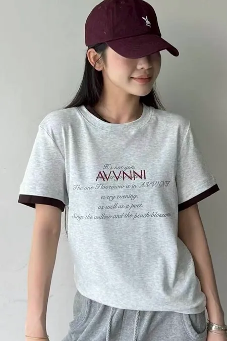 領配色假兩件式英文T