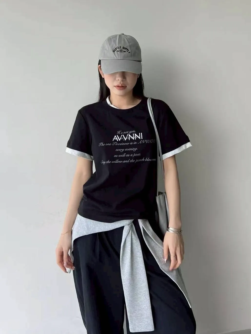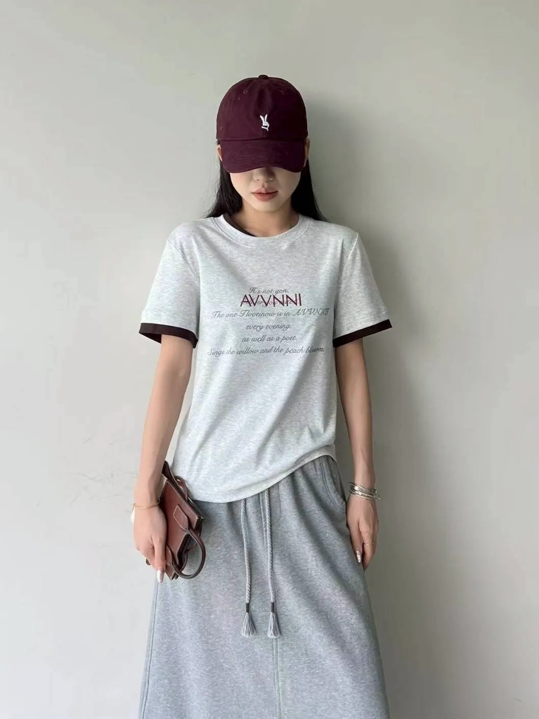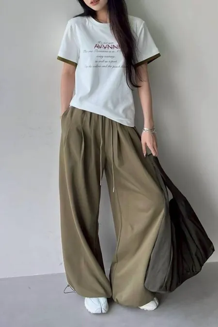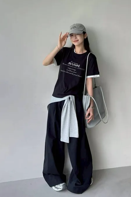 領配色假兩件式英文T