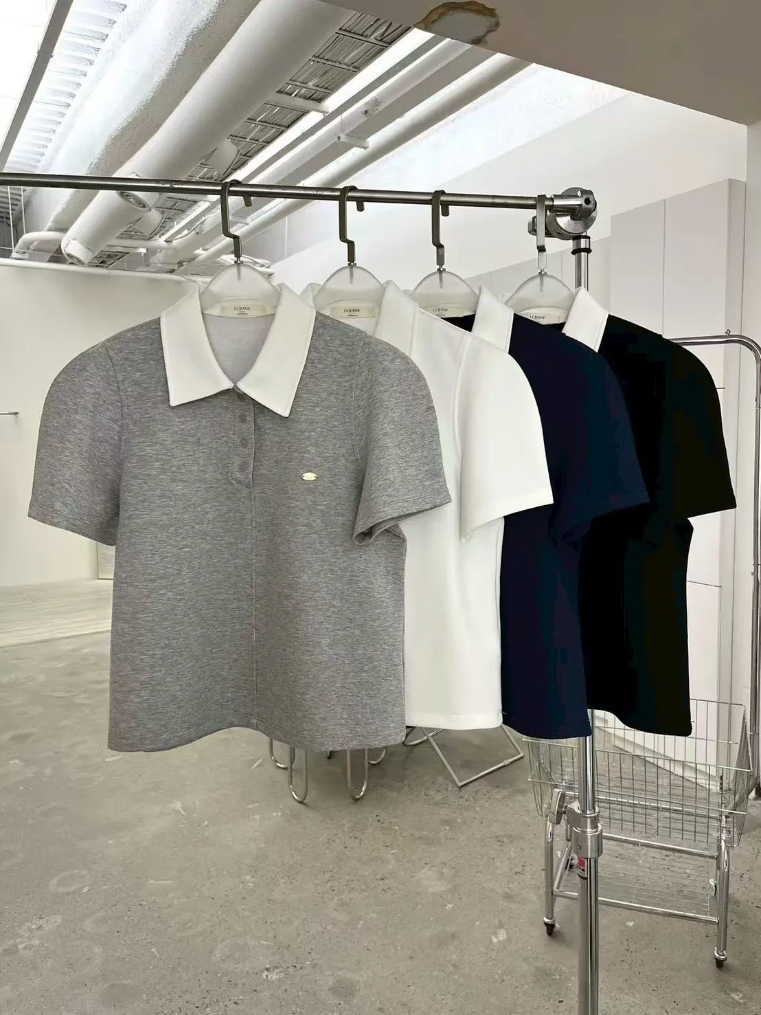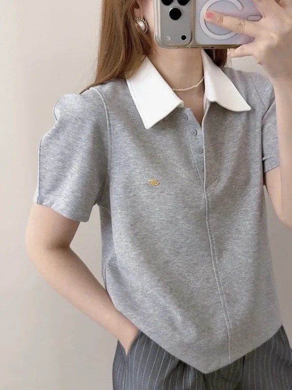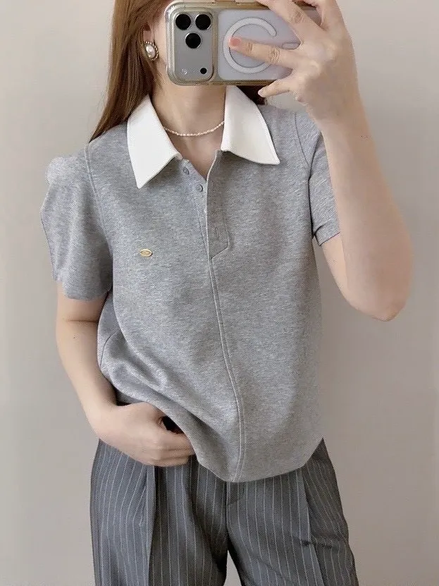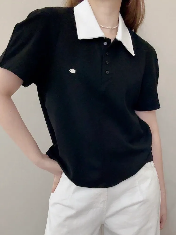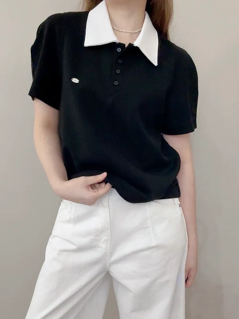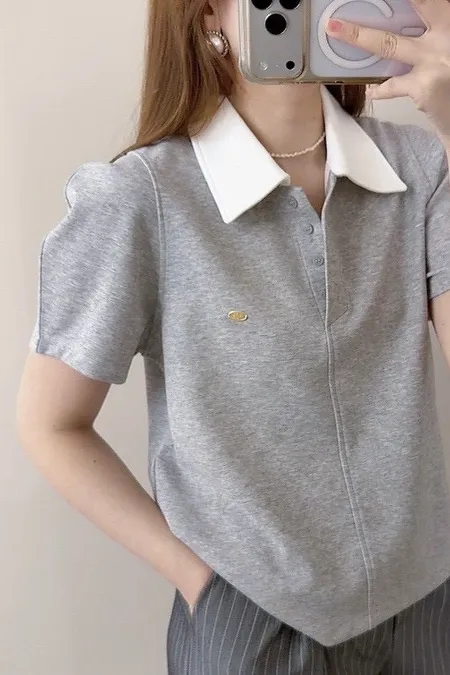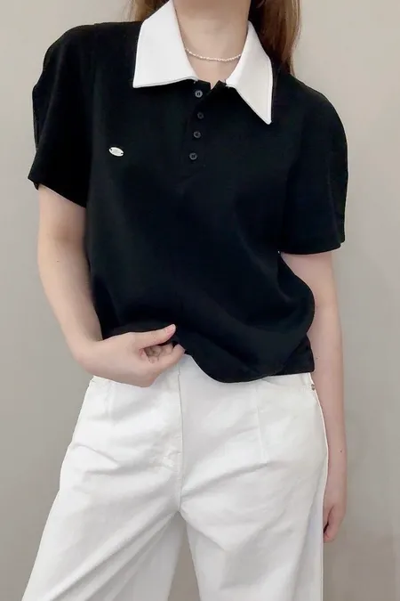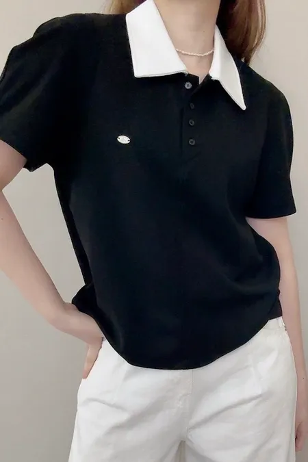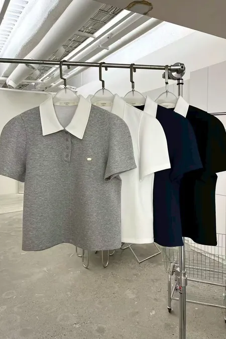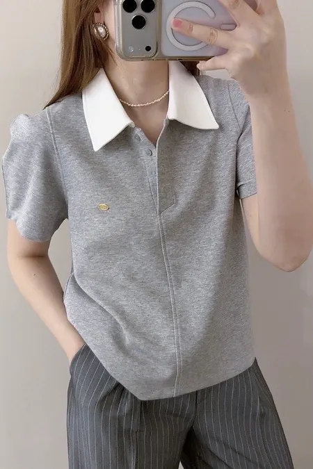 撞色polo棉T