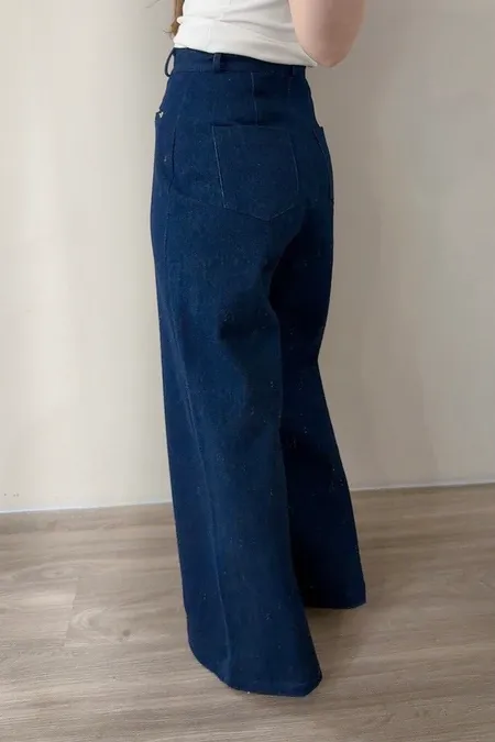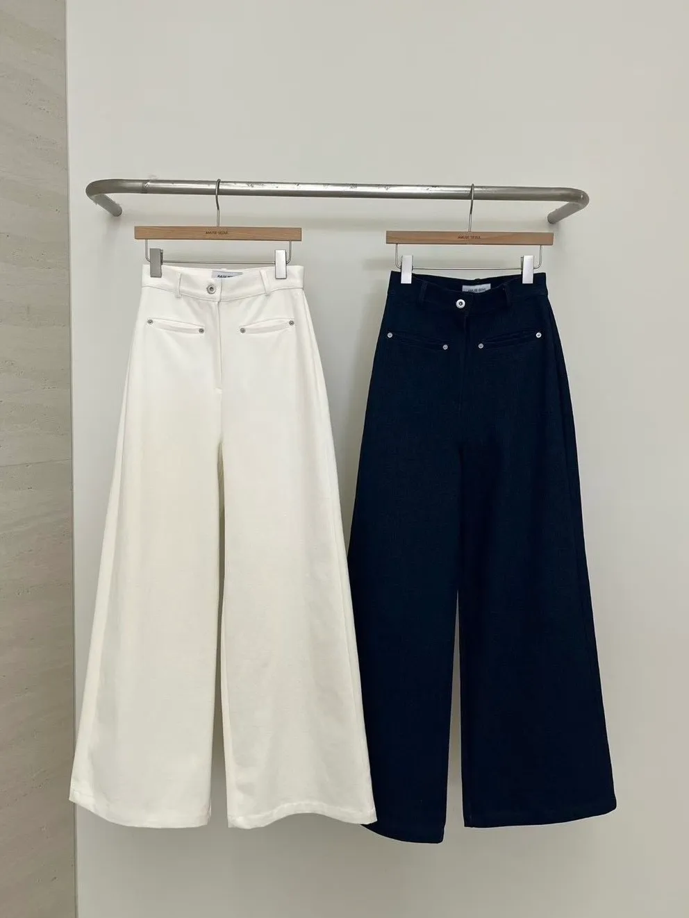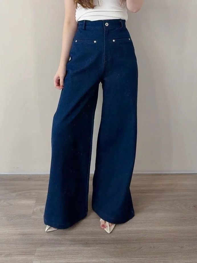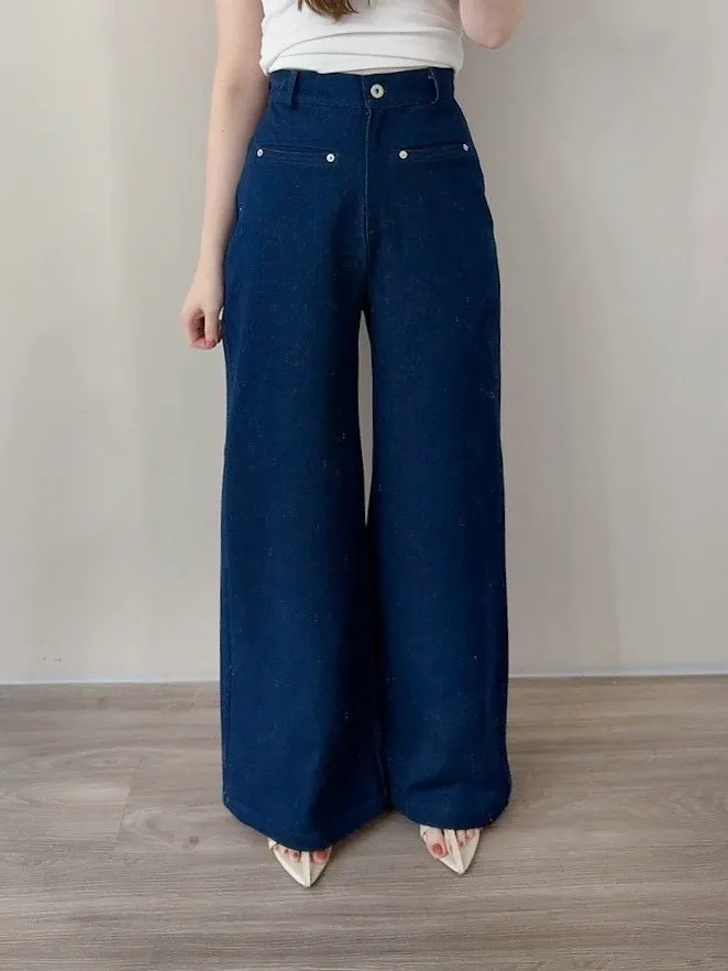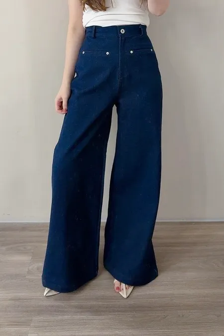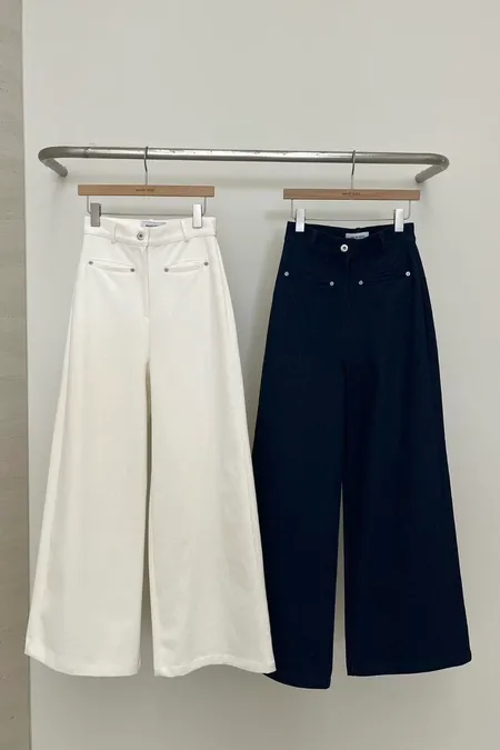 假口袋單寧寬褲
