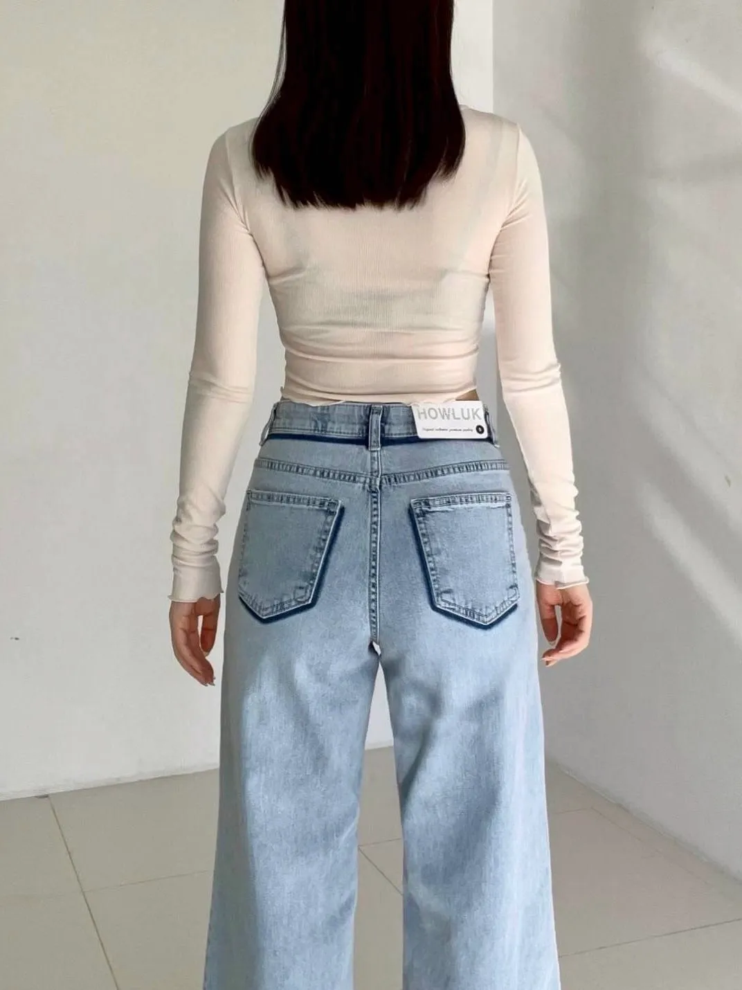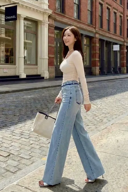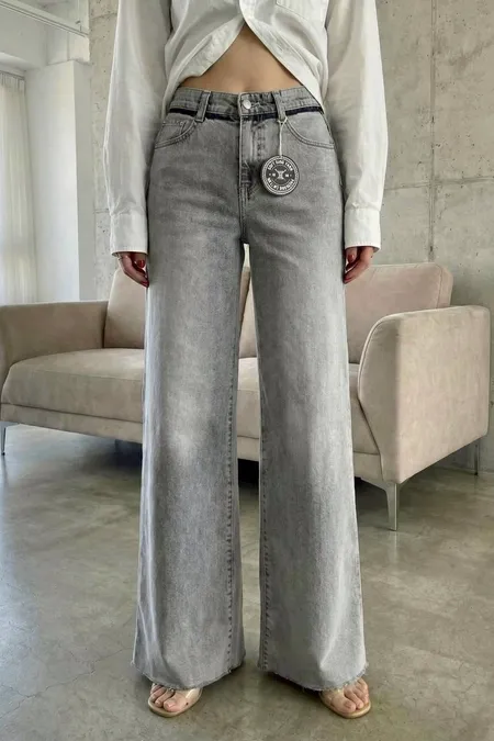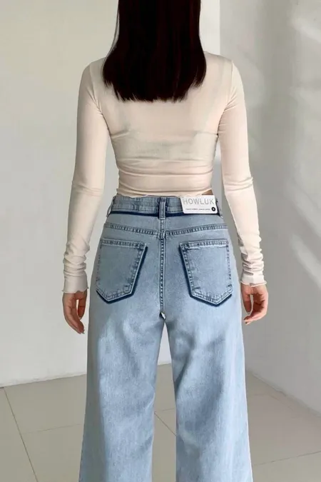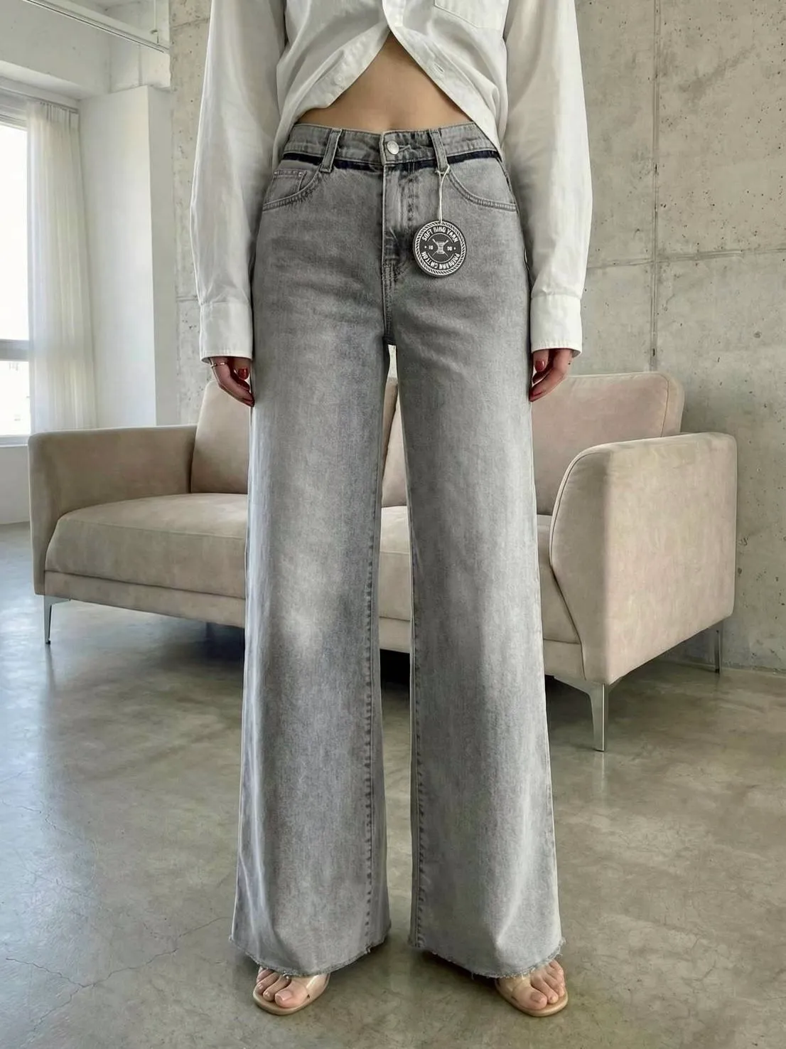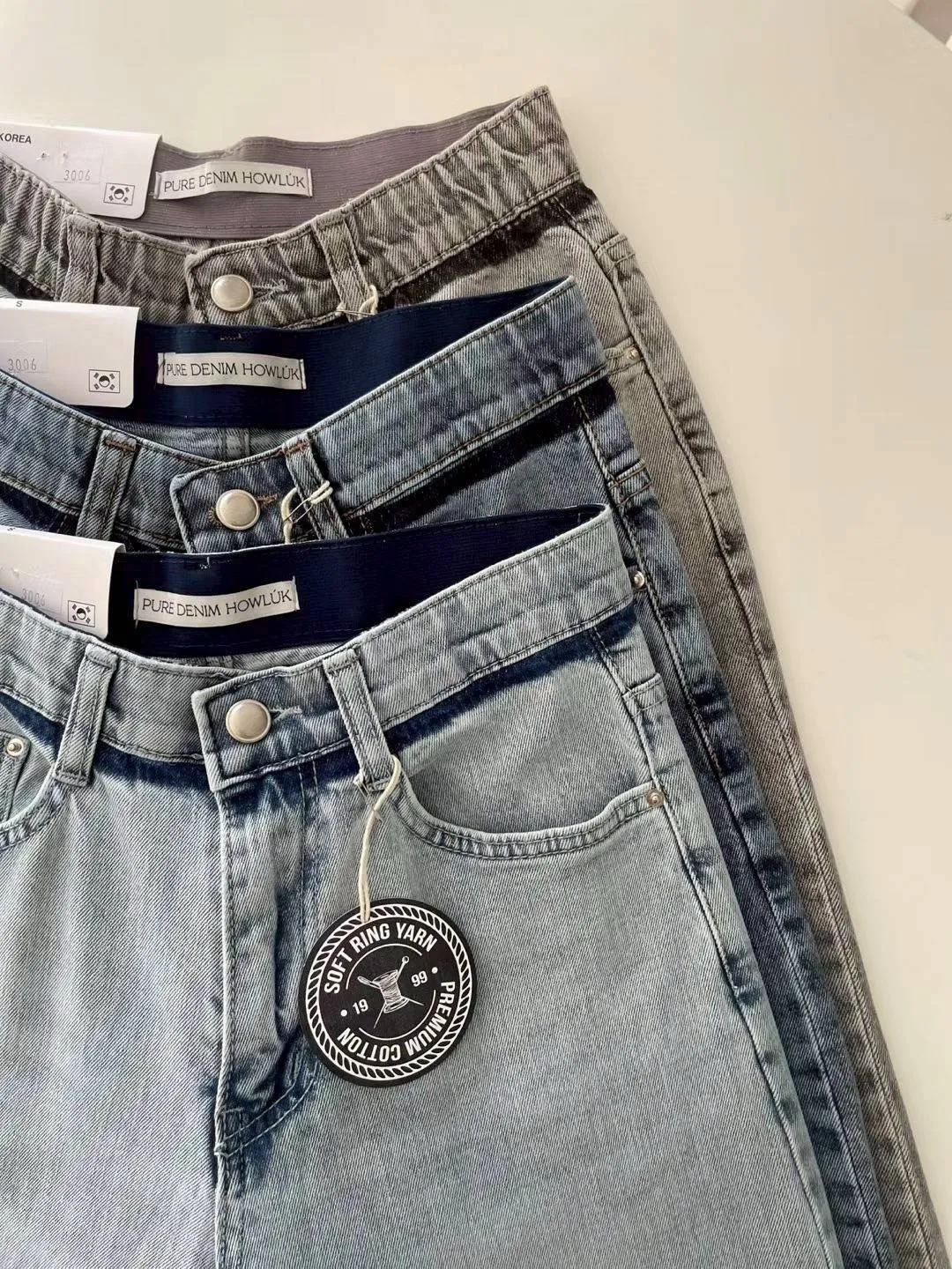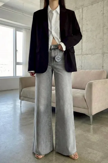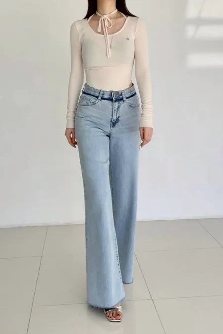 激瘦彈力刷色牛仔喇叭褲