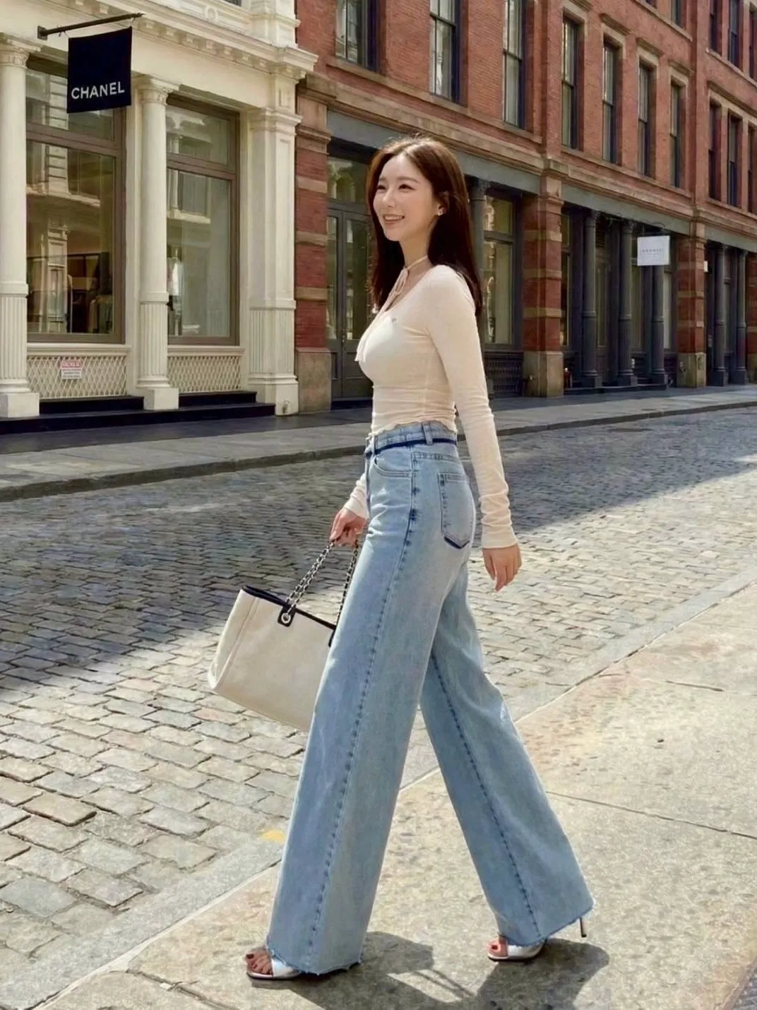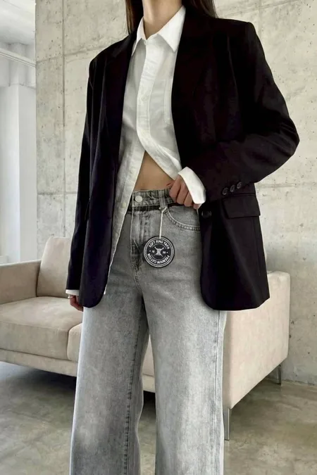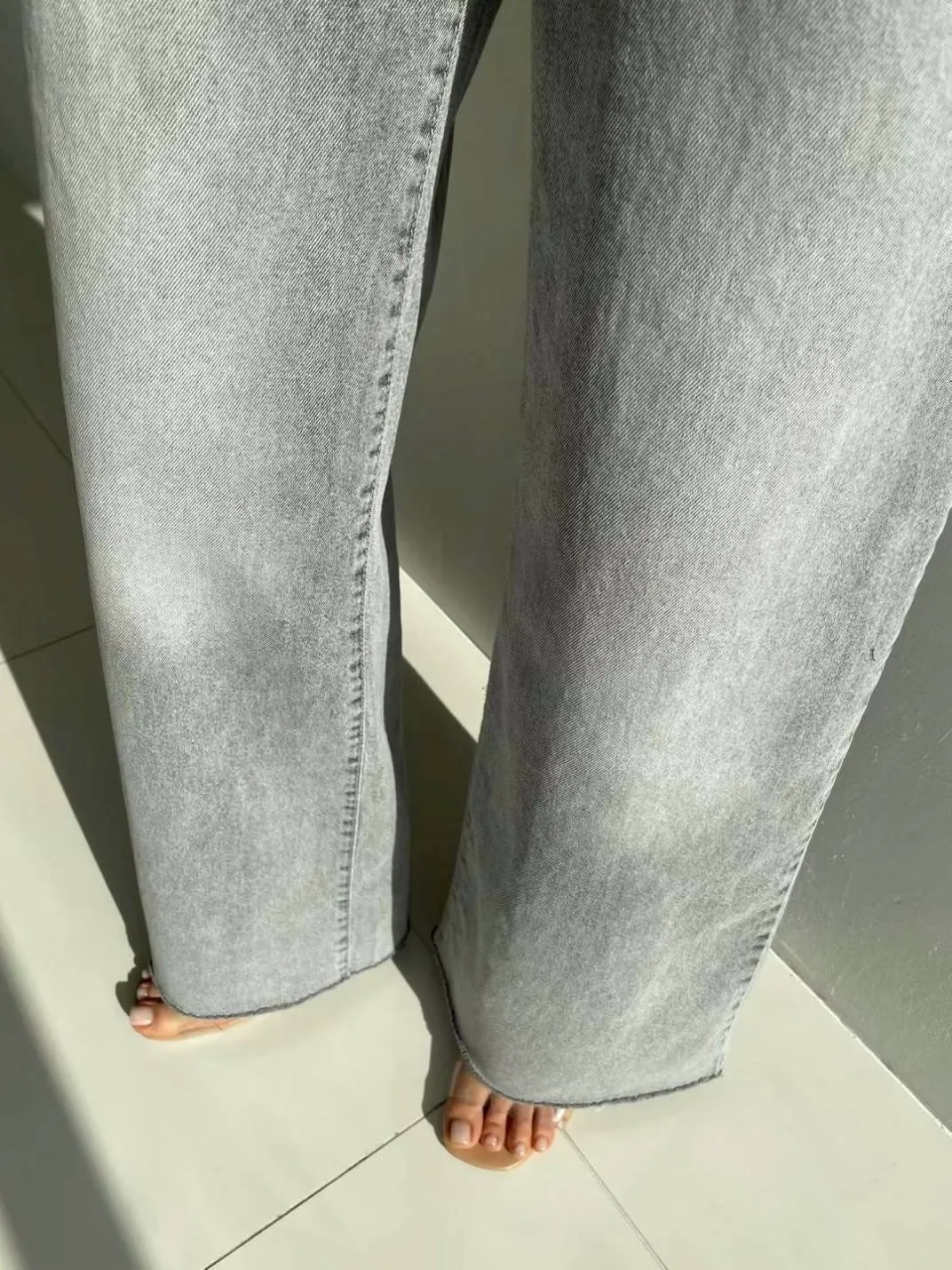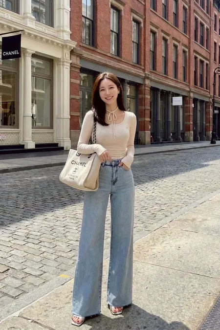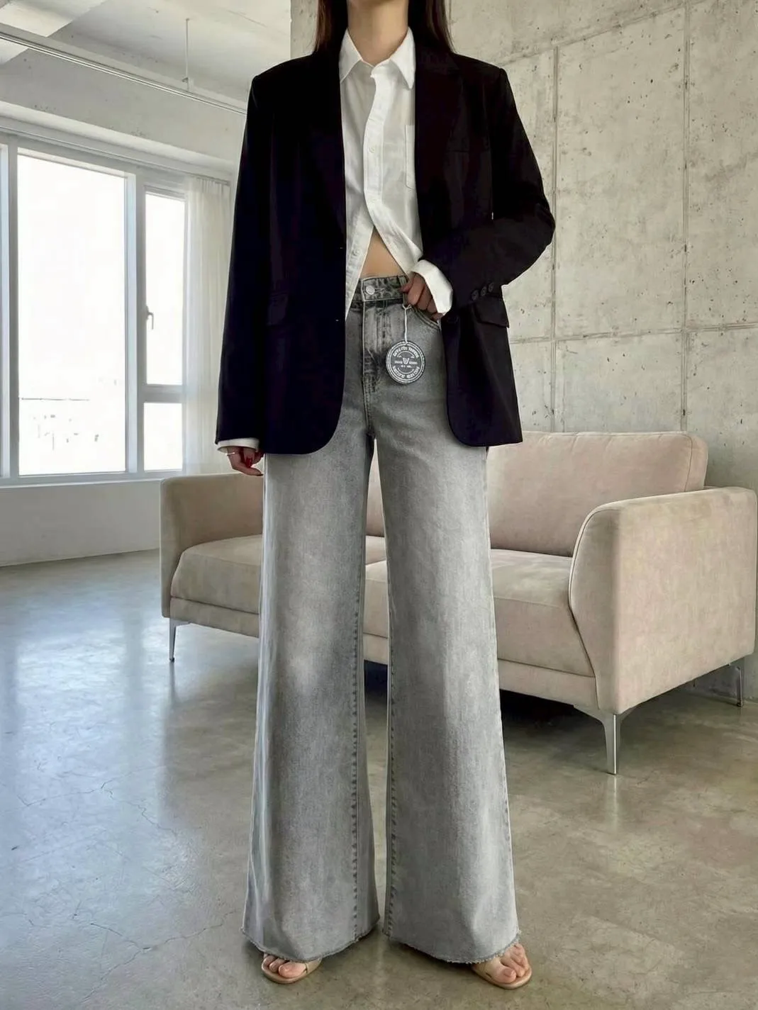 激瘦彈力刷色牛仔喇叭褲