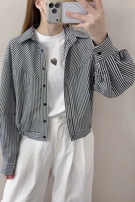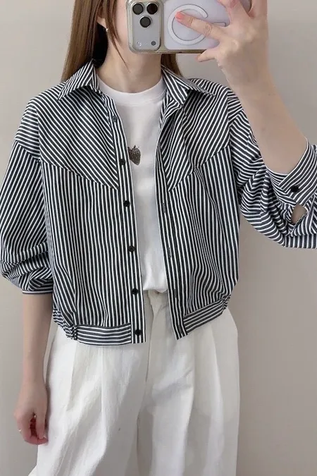 直紋氣球裝造型襯衫