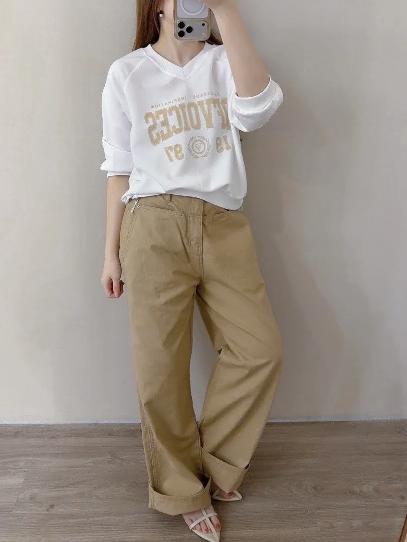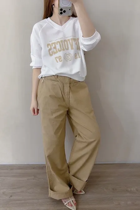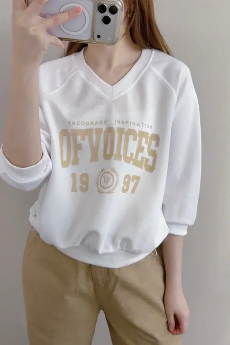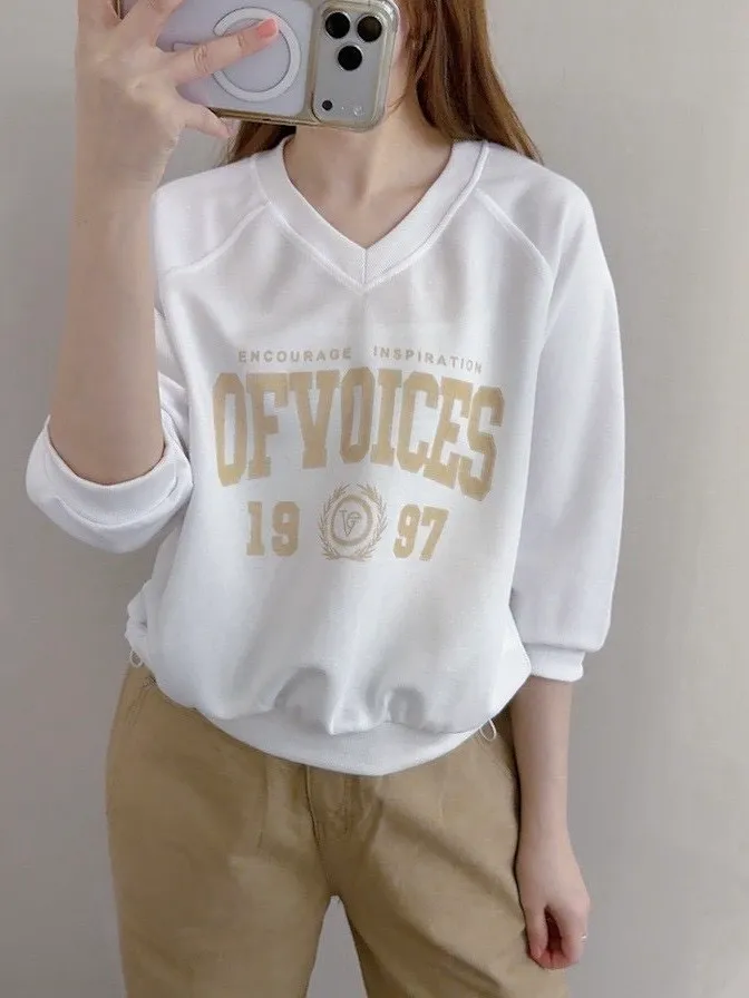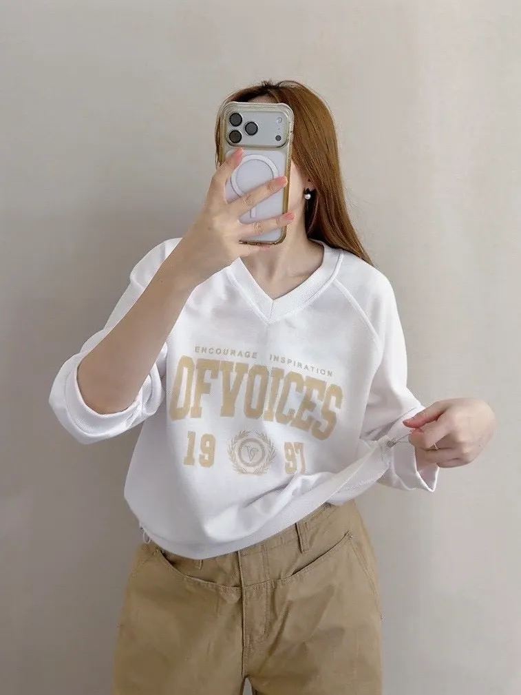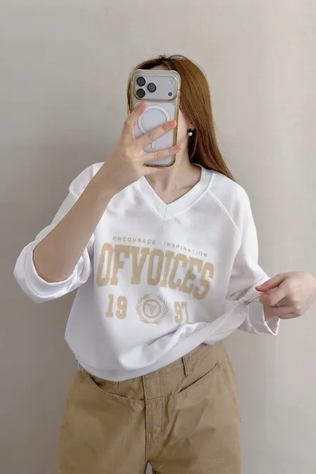 V領拼接繡字英文T