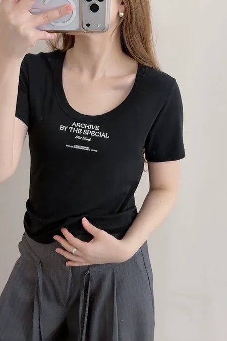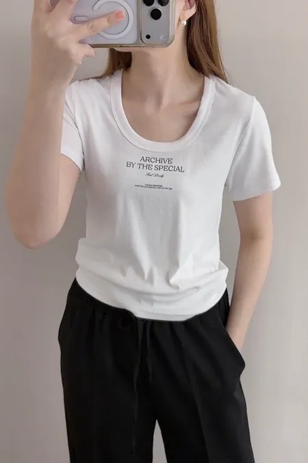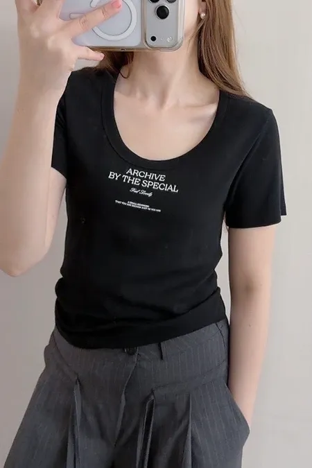 (特)超彈力柔軟U領英字