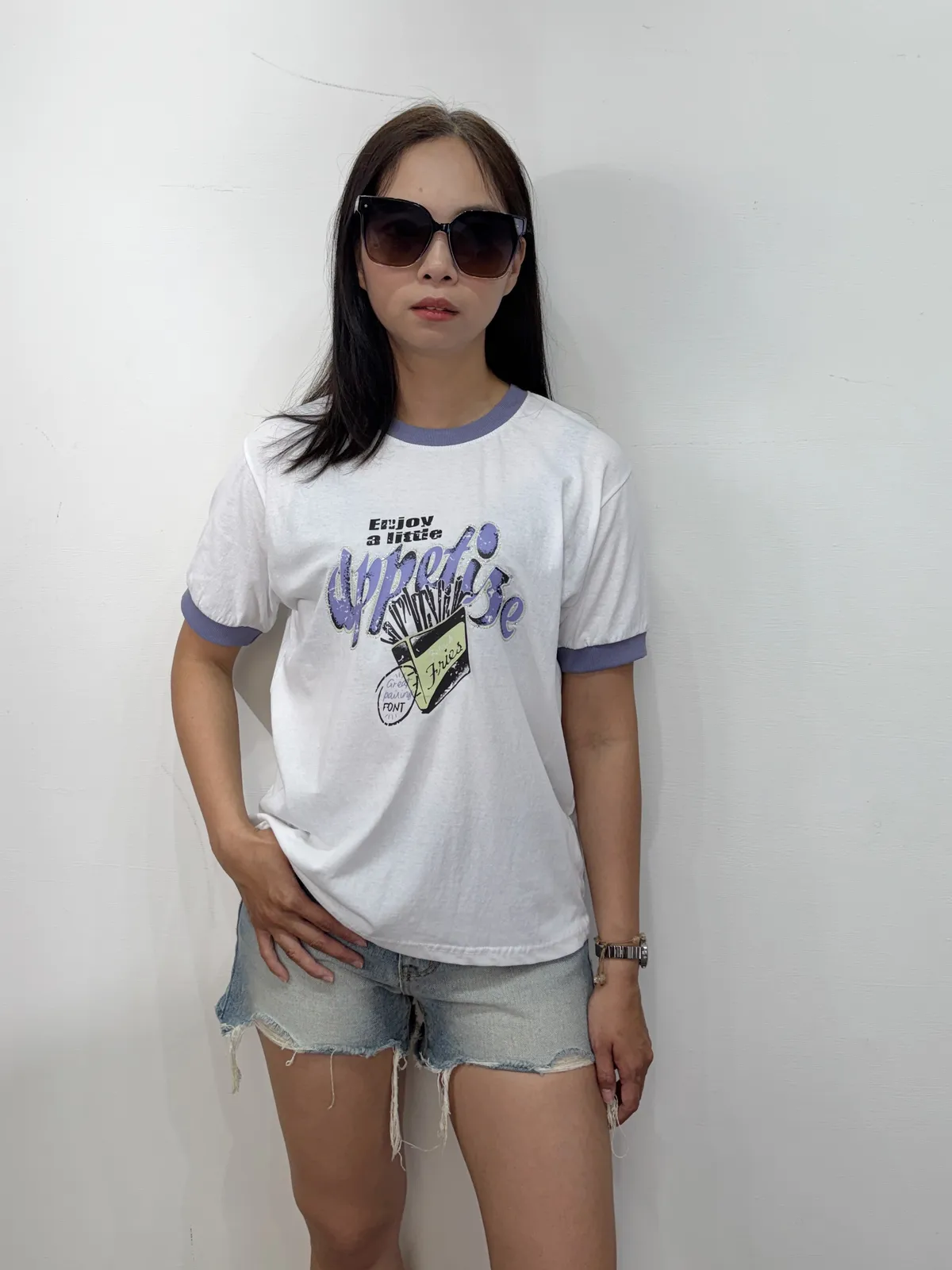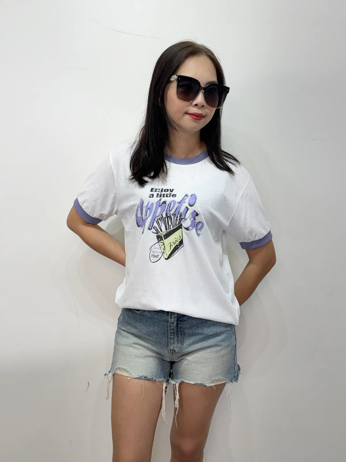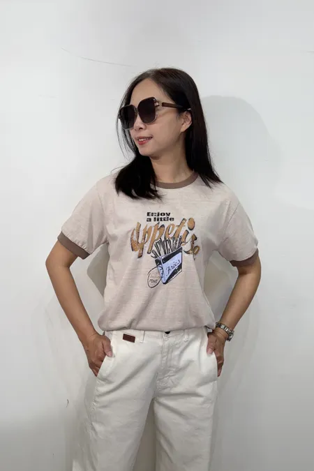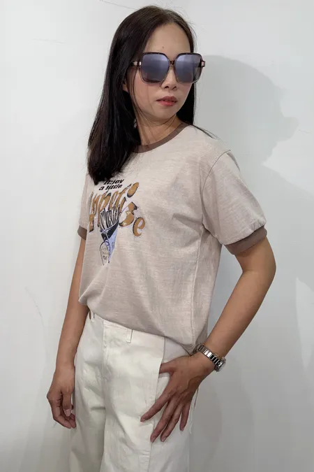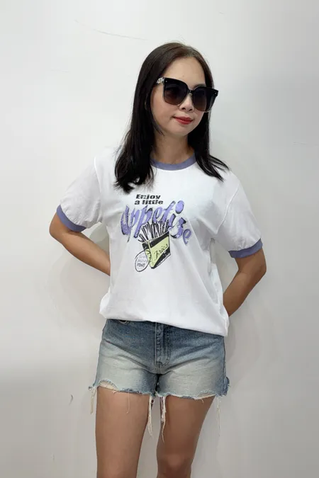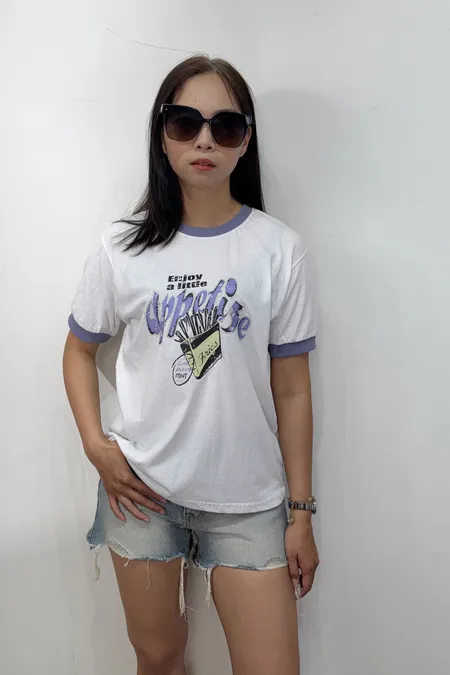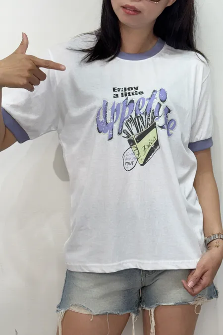 領口撞色薯條棉T
