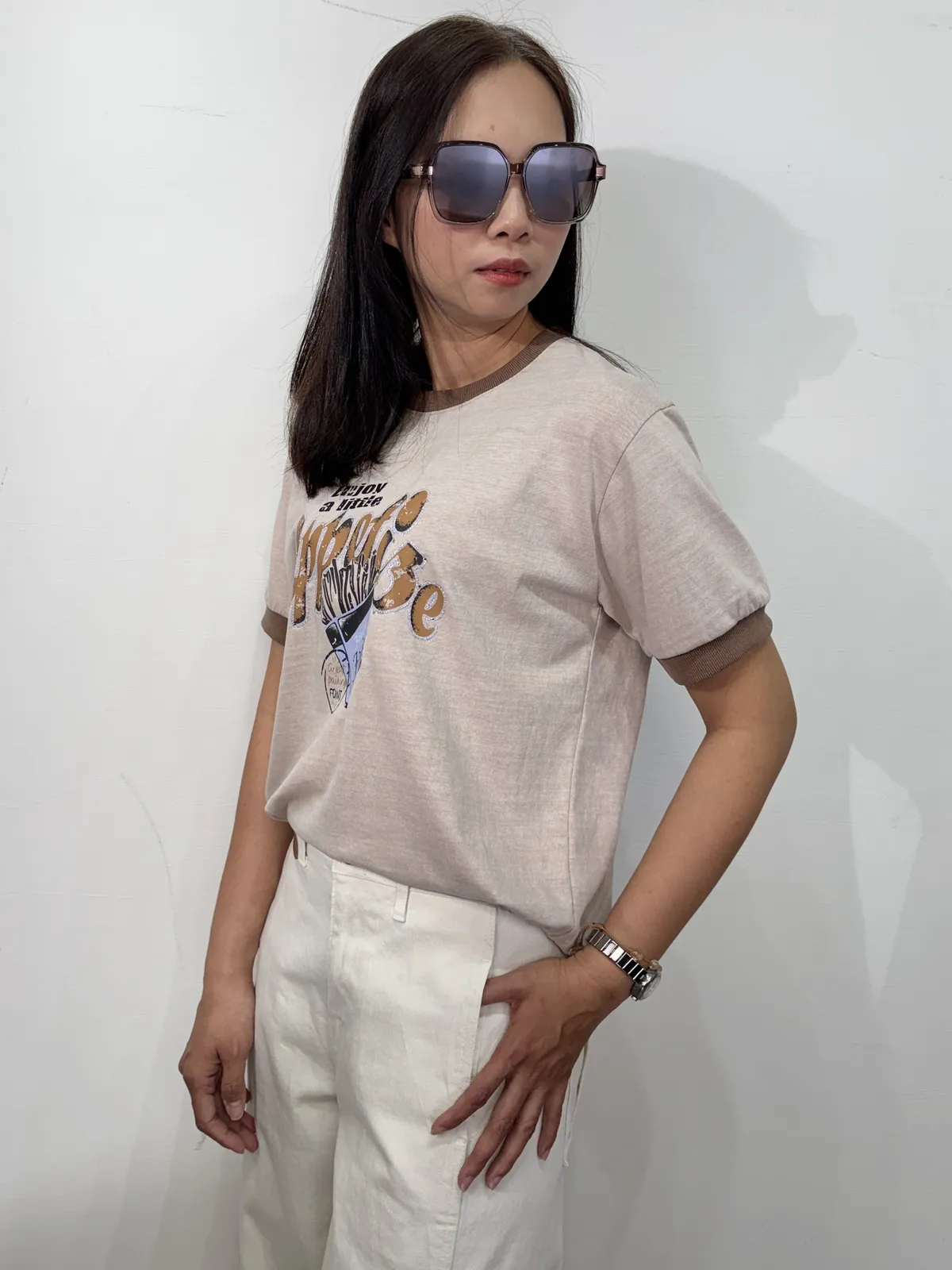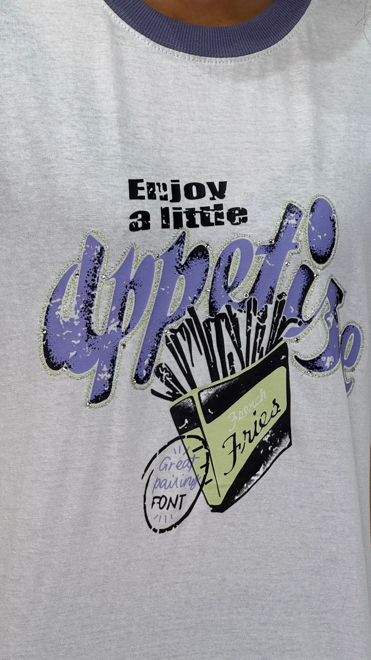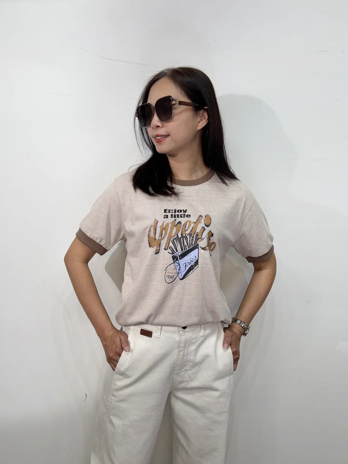 領口撞色薯條棉T