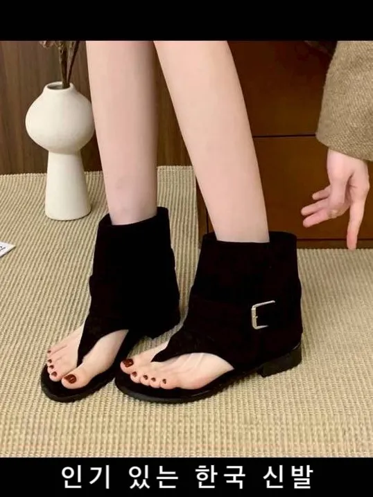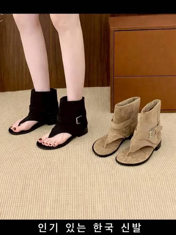 麂皮夾腳羅馬鞋